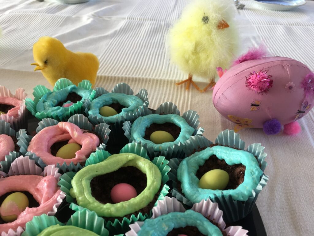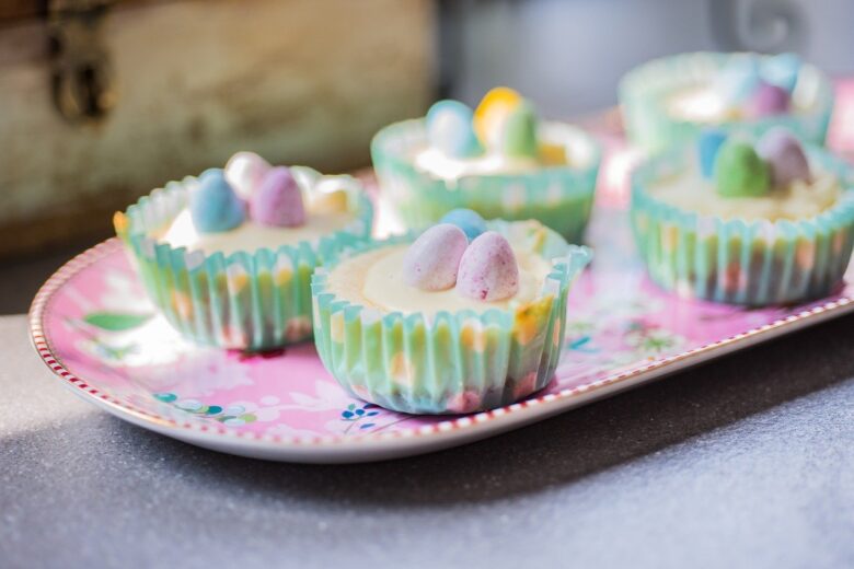 Muffins i form av ett fågelbo är en god och dekorativ efterrätt.