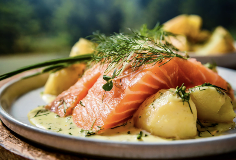 Rökt lax med citrussås och dillpotatis (4 portioner)