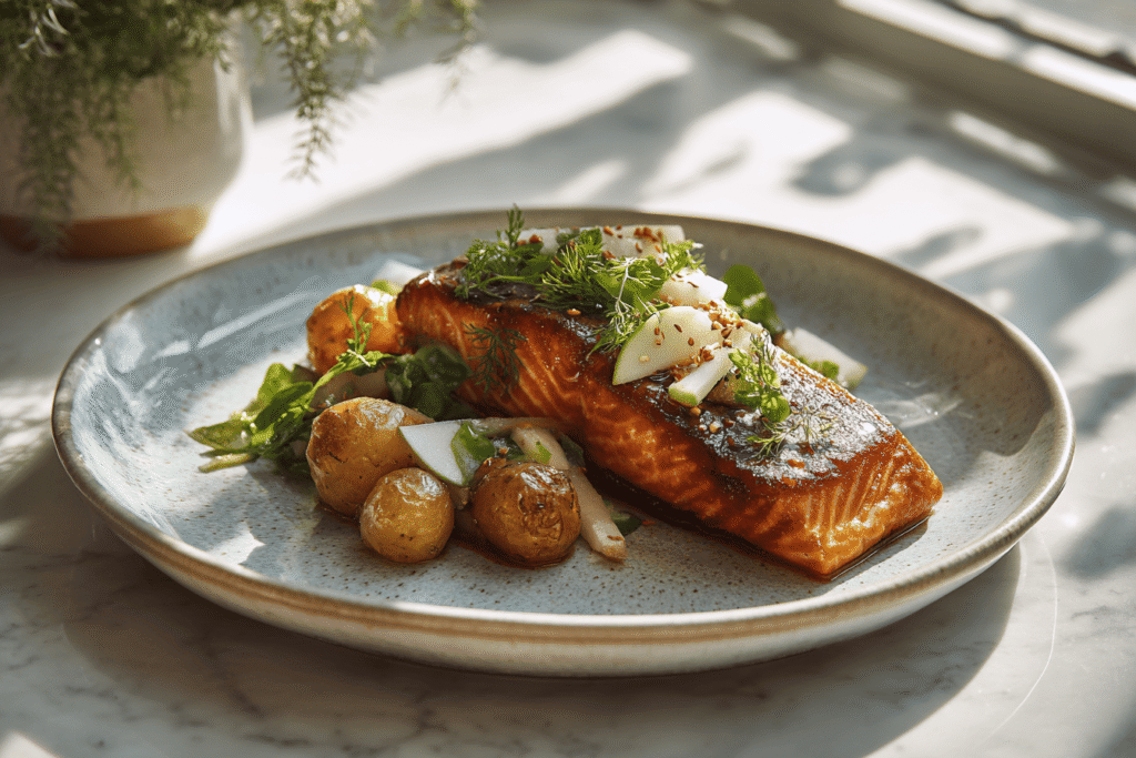 Avsluta helgen med något fräscht men lyxigt! Den här misobakade laxen har perfekt balans mellan sälta och sötma, och den krispiga kålrabbisalladen ger en fräsch kontrast. En rätt som är lika enkel som elegant.