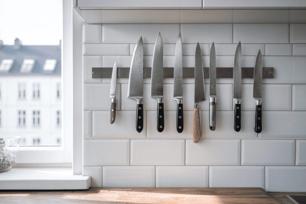 Knivar som ligger löst i en låda slår mot varandra och blir snabbt slitna. Dessutom är det en onödig skaderisk. Förvara dem på magnetlist, i knivblock eller med knivskydd. Då håller de sig vassa längre – och du får bättre överblick i köket.